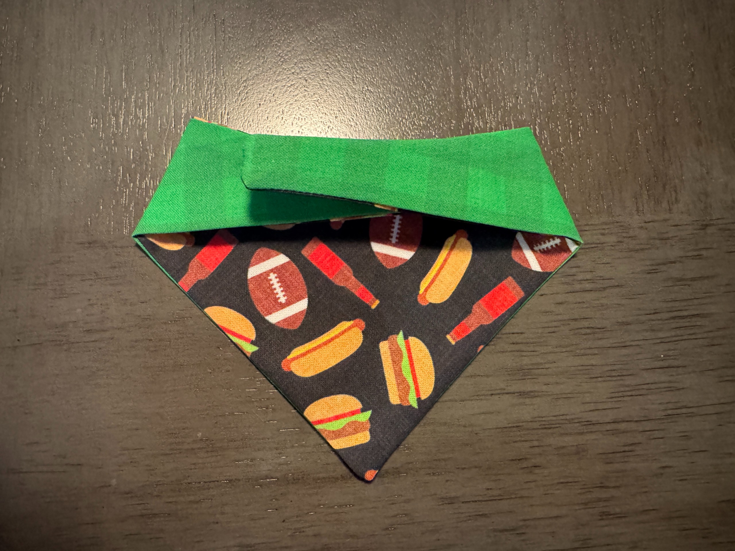 Black with Hot Dogs, Football, Burgers on Green Gingham